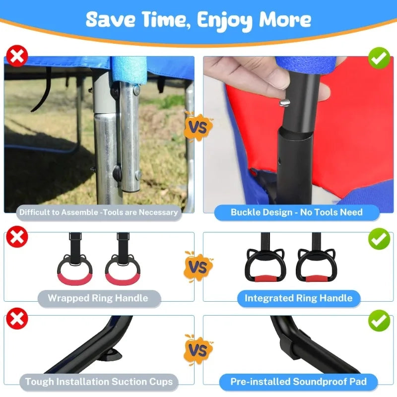 Our 55-inch trampoline comes with a robust enclosure net, creating a safe haven for your little one to explore boundless energy and active growth. Watch them thrive with every joyful bounce, giving you true peace of mind.